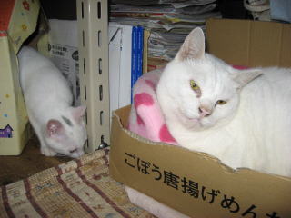 タワーのBOXの中で将♂椅子BOXの中で将♂19日は何かあったかな??最低気温0.3℃最高気温9.0℃朝起きたら、雨が降ってたョ。その後、雨はすぐ止んだ。朝から晴れ~~。って、午前10時30分ぐらいまでは晴れてたョ。午後12時発の高速バスで高知に。叔母が迎えに来てたので、長兄の家に寄り、母のことを話して、叔母の家に。それから実家に寄って、母の肌着等を持ち帰り、叔母の家で、持ち帰ったのを荷造りして、送ることに。19日叔母の家でお泊まりです。様子見(=^-^=)達は、スリリン♀ふく♀ホワイト♂デコ♀ボク♂の5にゃん毎日の飲み薬(=^-^=)達は、スリリン♀ふく♀ホワイト♂デコ♀ボク♂の5にゃん5にゃんの薬は、缶詰に混ぜてます。まだまだ手がかかってます。申し訳ないですが、暫くは、コメントへのお返事は無理みたいです。