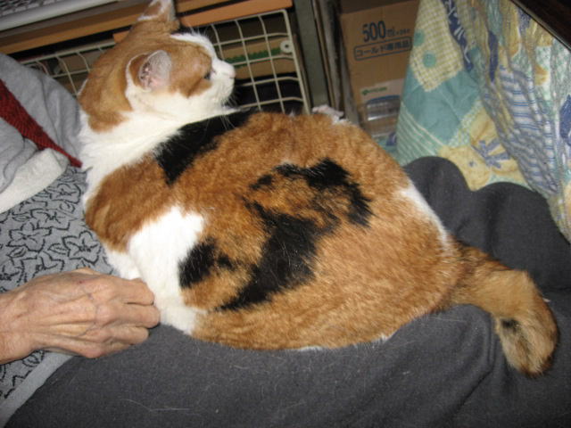 まるちゃんと呼ばれてるのは、きじ丸♂~~きじ丸♂は、父ちゃん大好きにゃ~きじ丸♂は、父ちゃんの膝も大好きにゃ~左のホワイト♂と左のボク♂後ろの白2にゃんは顔が見えないから分からにゃい~~。23日は何かあったかな??最低気温3.3℃最高気温6.8℃朝から晴れ間が覗いたり曇ったり、小雨がパラつく空模様。風の冷たい、((´д`)) ぶるぶる・・・さむ~~い一日でした。午前中は、介護認定の変更調査があって、母の入院してる病院へ。終わったその足で、叔母が帰るので、高速バスの乗り場まで送って行ってきた~。勿論、運転は父ちゃん。^^早めに着いたので、近くのスーパーでお昼のご飯を買って車の中で食べた~。午後2時50分発の高速バスで高知へ。それからJRに乗り、佐川まで帰って行きました。様子見(=^-^=)達は、スリリン♀ふく♀ホワイト♂デコ♀ボク♂の5にゃん毎日の飲み薬(=^-^=)達は、スリリン♀ふく♀ホワイト♂デコ♀ボク♂の5にゃん5にゃんの薬は、缶詰に混ぜてます。まだまだ手がかかってます。申し訳ないですが、暫くは、コメントへのお返事は無理みたいです。