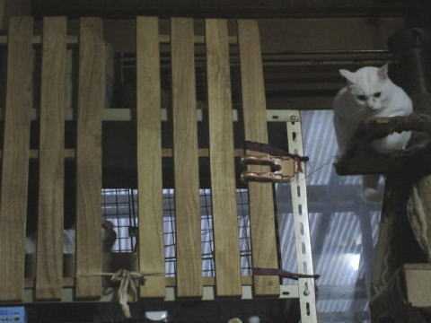 今日のにゃんこたちは、何をしてたのかにゃ~?純♂南側スチール棚から、カメラ目線になってるかな?剛♂タワー二段目から、上のBOXに乗るの~?それともスチール棚に乗るの~?ミコ♀膝に乗ってるけど、父ちゃんは何か取ろうとしてたから、膝上が窮屈になってるね。コチャ♂ロンボーの上から、身体を伸ばしてスチール棚上の純♂を見てたかな?蘭♀自分のケージ前の爪とぎの上で、座ってることが多いよねぇ~。ストーブの上に座ってるアキ♀横から将♂が場所を取りに来たの~?それとも後ろにある、猫ベットに行きたいのかな?通りかかった手前のふみ♀8日は~~最低気温マイナス3.1℃最高気温11.1℃朝から、晴れたり曇ったり。気温が上がったわりに、風は冷え冷え~すんご~~く冷たい日中でした。様子見(=^-^=)は、エル♀ミコ♀華♀飲み薬1日に一回のミコ♀3日に一回のエル♀獣医さん通いは、体調によって3週間~2ヶ月に一回のエル♀ミコの2にゃんこ(華♀12月1月と、2週間に一回の注射通いになってます。)お腹の調子が悪くなったら、整腸剤を一日1回まだまだ手がかかってます。申し訳ないですが、暫くは、コメントへのお返事は無理みたいです。我が家が26にゃんこだった時の紹介は2018年01月07日の日記←26匹の猫達