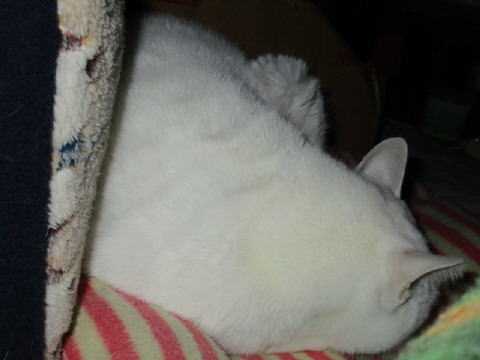 お気に入りの場所をゲットできたの~?ユキ♀タワーてっぺんから、みんにゃを見てる?ホワイト♂ケージの中で、カメラの光が眩しかったのか?目を閉じたねぇ~天♂父ちゃんの膝上で将♂低い椅子上の猫ベットの中でロンボー上のふみ♀チェアーの毛布上で蘭♀庭の南天まだまだ元気で、赤い実をつけてます寒さで、余計赤く見えてるのかな?9日は~~最低気温マイナス3.0℃最高気8.8℃朝起きた時は、道路は霜で真っ白~冷え込みのきつい朝になりました。朝から、薄日の射す、雲の多い空模様今日も、冷え冷え~寒い一日でした。我が家が26にゃんこだった時の紹介は2018年01月07日の日記←26匹の猫達