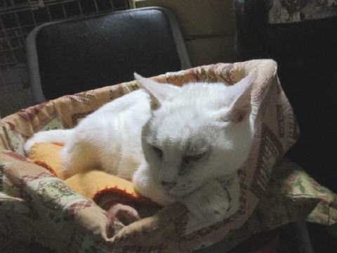今朝の冷え込みはきつかった、寒過ぎにゃ~朝から、エアコン点いてま~す。^^タスキ♀低い椅子上の猫ベットの縁に手をのせあご乗せして、ネムネム?マリ♀いつもの定位置、母ちゃんの座椅子上でのんびりと天♂コタツ下の猫ベットで、ゆったりと~ふみ♀新しい爪とぎ箱の中で、後ろを振り返ってるけど、誰にゃんか来てるの~?純♂指定席になってる父ちゃんの片膝にのっかってる昨日は買物から帰ってから、大急ぎでにゃんこのケージにミニホットカーペットを入れたよ~。10月1日の衣替えの日に、毛布だけ~入れてたけど、寒いから風邪をひくと大変だぁ~と思い父ちゃんと二人で大急ぎで、ミニホットカーペットを入れたョ。昨日21日の夜から電源入れて、ヌクヌクで朝を迎えたョ。寒過ぎる朝になったので、ミニホットカーペット入れてて良かったなぁ~。庭の富有柿を収穫したョ手で届く所を採りました。(15個ぐらい採ったかな?)小ぶりの柿が多いです。22日は~~最低気温12.3℃最高気16.3℃朝起きた時には小雨がパラついてたけど、すぐ止んだ。朝から、どんよりした曇り空風は冷え冷え~寒い一日でした。我が家が26にゃんこだった時の紹介は2018年01月07日の日記←26匹の猫達