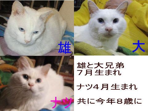 純♂とミコ♀は兄妹(姉弟)は4月生まれ。健♂は10月生まれ