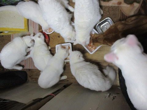 缶詰に混ぜて、一日1回ボク♂ナツ♀エル♀にまだまだ手がかかってます。