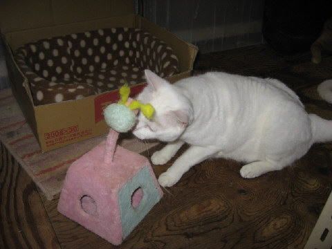 独り遊びをタワーから見てるにゃんこと、外を見てるにゃんこ~