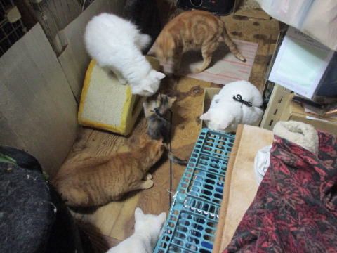 様子見(=^-^=)達は、あい♀ナツ♀エル♀剛♂マーブル♂の5にゃんこ