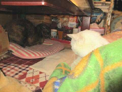 わかりにくいけど、二段BOX下の猫ベットにふみ♀