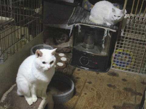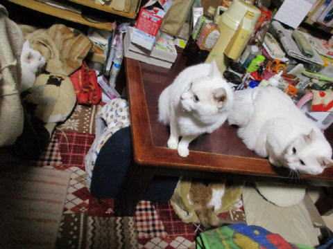 爪とぎ上の蘭♀とストーブ上のアキ♀は、コタツの上の2にゃんを見てたの?