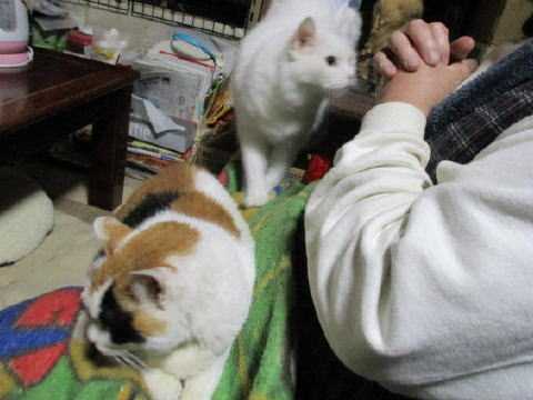 膝の上のミコ♀コタツ下の猫ベットに誰にゃんかいたの?