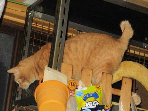 コチャ♂南側スチール棚上から下を見てるけど、誰にゃんか来たの~?