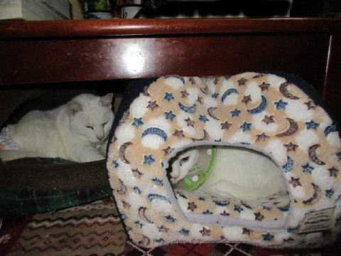 母ちゃんの座椅子横の猫ベットに天♂は、ネムネム?剛♂は、こっち見てたかな?