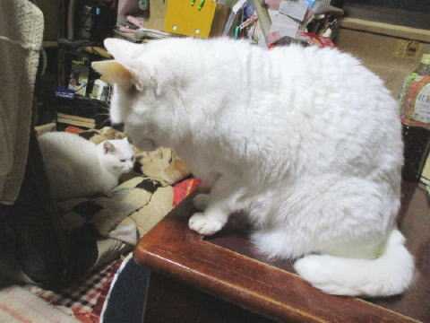 右の白にゃんこ、後ろ半分しか見えてないけど誰?蘭♀かなぁ~?