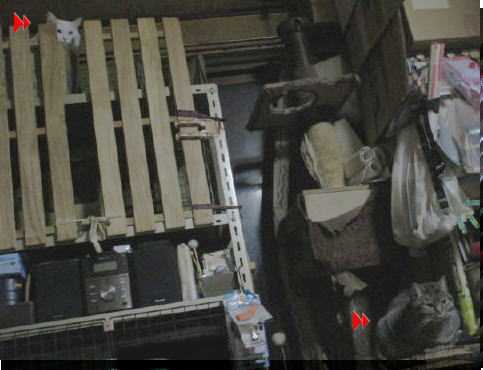 スチール棚上の箱の中にアキ♀タワーBOX下でユキ♀それぞれの場所から、何を見てたの~?