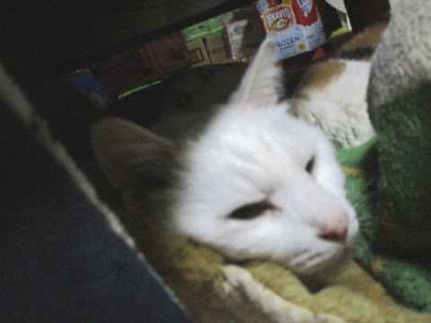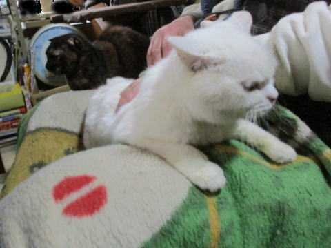 父ちゃんの足元の毛布の上のミコ♀は、背中しか見えてない