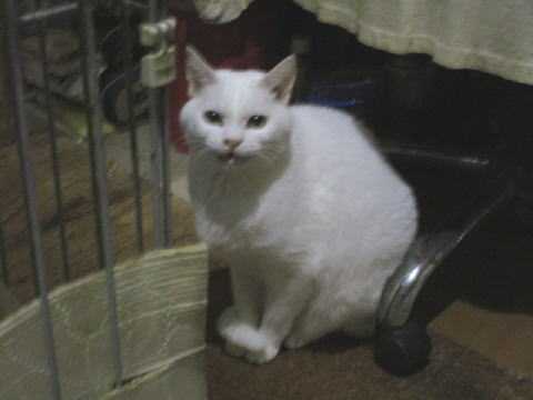 ホワイト♂自分のケージの横でちょこんと座ってる