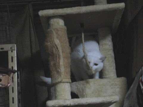 移動してBOX上から、ぶら下がってる紐の匂いを嗅いで