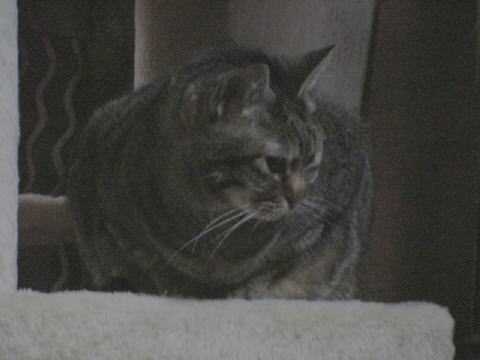ふみ♀タワーてっぺんから、外を見てる。小鳥さんでも来てたの~?