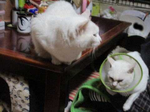 コタツ上の天♂膝の空き待ちかな?膝上はいつもの剛♂