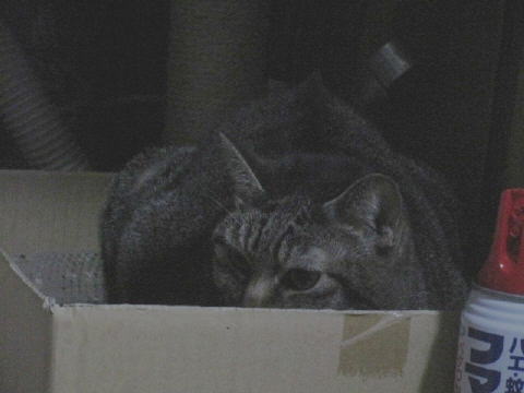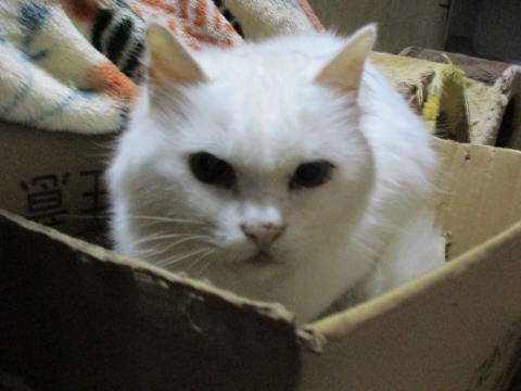 ユキ♀タワー下の爪とぎ箱の中