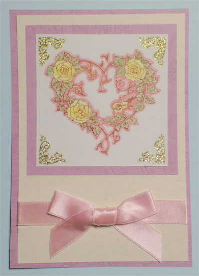 エンボスした《ハートローズリース》に簡単に色を塗るだけでこんなに豪華に
