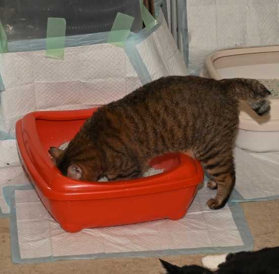 トイレで用を足した後、砂を掛けているタッキー身体の後ろ半分が外に出て、前脚のみトイレの中です。「後ろ脚は、外に出す主義ですニャ。」何やら良く判りませんが、不思議な拘りがあるようです。ブログランキングに参加しています。このイラストを、ポチっとお願いします。にほんブログ村