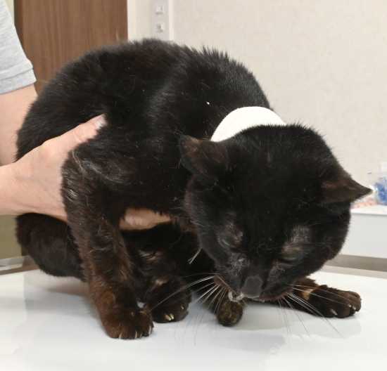 本日も、タクの通院土曜日からステロイドの注射を開始した効果が表れ、炎症反応の数値が正常範囲内に戻りました。更には、鼻カテーテルの入れ替えを行うため、念の為に、鎮静剤のミタゾラムを打って貰いました。鼻カテーテルの入れ替え処置後、ミタゾラムの副次効果により、長らく行っていなかった、前脚で顔を洗う仕草を行い、自分の口から、僅かですが、ご飯を食べてくれました。更には、帰宅後、これも、2ケ月以上無かった、自ら水を飲んでくれました。本日の検査結果を踏まえて、一時的に中止していたIBD(慢性腸炎)の治療薬のリューケランも再開する事になりました。本日の自らの飲食は、ミタゾラムの一時的な効果で、まだまだ、数時間毎の鼻カテーテルからの栄養補給は続きますが、それでも、やっと、希望の明かりが見えて来ました。ブログランキングに参加しています。このイラストを、ポチっとお願いします。にほんブログ村
