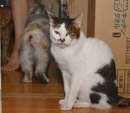 珍しく、タミ、マミ、ミワの3匹が、一か所に集まっています。真ん中に居るのがタミ右に居るのがマミ左はミワ4年前に、近所の再開発地域から保護した子で、皆、血が繋がっており、タミとマミは、最初は、パッと見ただけでは、区別が付きませんでしたが、今は、顔だけ見ても判別が付きます。幸いな事に、この3匹娘は、現在、無投薬。このまま、元気に過ごして貰いたいです。ブログランキングに参加しています。このイラストを、ポチっとお願いします。にほんブログ村