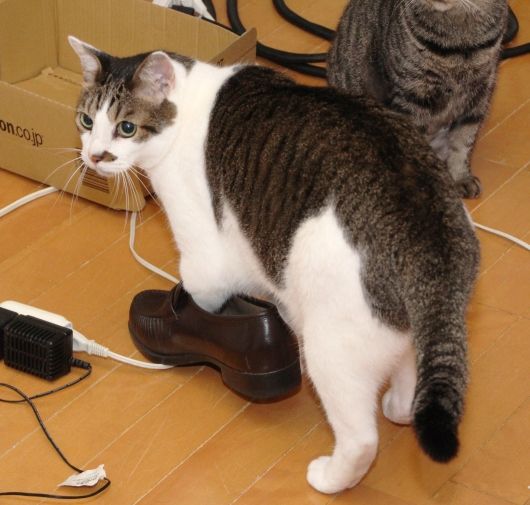 「やはり、両足に履かないと、バランスが悪いですニャ。」