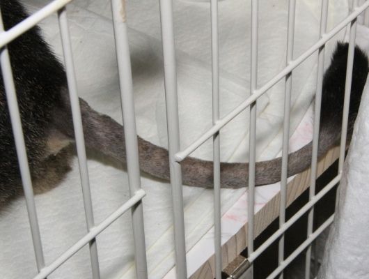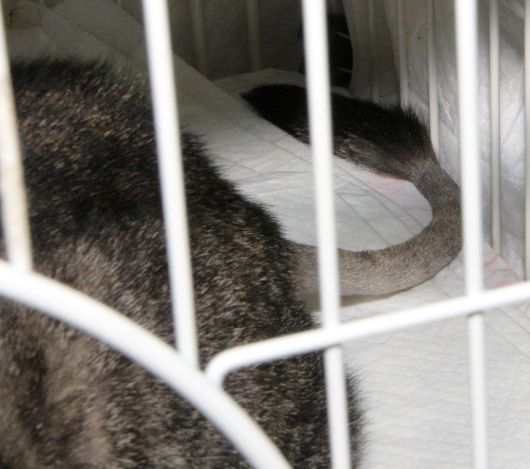 お腹の緩いミンジのウンチが、どうしても尻尾についてしまい不衛生な為、少しでも衛生的になるようにとの先生の配慮です。