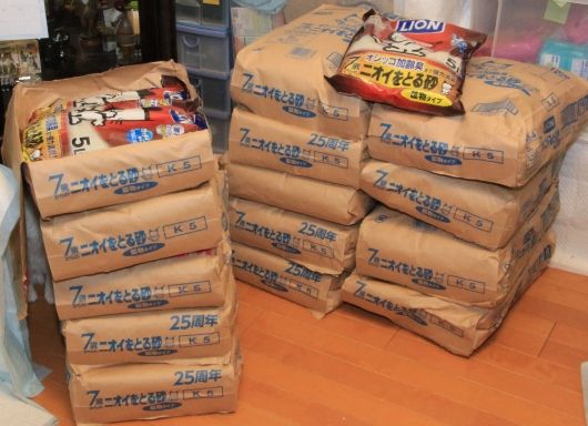 毎週末必ず、全部のトイレの砂を入れ替えるので、その際に8袋