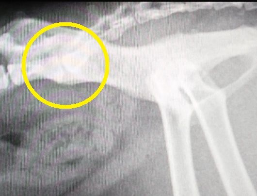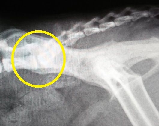 背骨と尻尾の付け根の骨の状態の経過を年を追って見てみると、若い頃は、骨と骨の隙間もしっかり開いてましたが、2015年のレントゲンでは、先ずは、隙間がかなり狭くなって来ており、更に、2016年のレントゲンでは、骨の下の部分に突起が、これを我が家ではトケトケと呼んでいます。