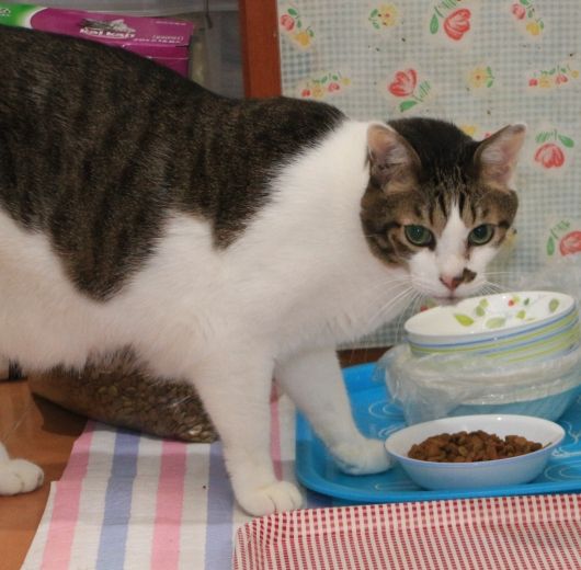 お母さんが、ご飯の準備をしていますが、腹ペコのキラは、待ち切れずに、残り物にも口を付けています。