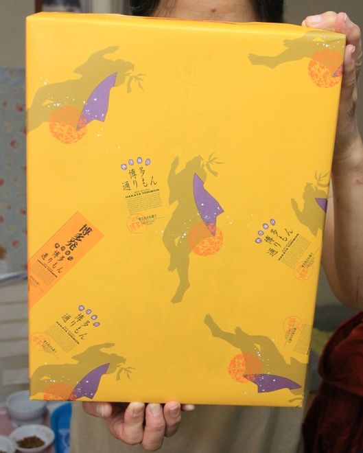 ど~だ、お母さんの身体と同じ大きさの<博多通りもん>だぞ!