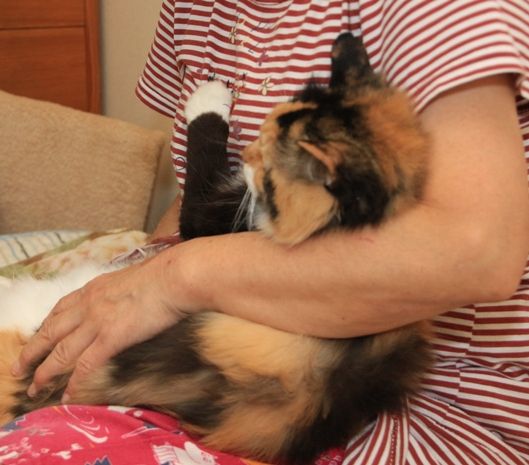 お母さんが部屋に入って来たら、いきなりモモがお母さんにしがみ付いて来ました。