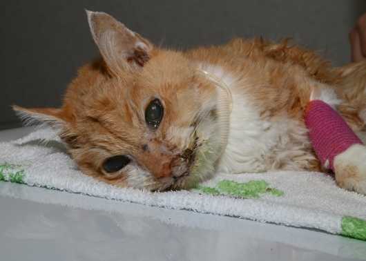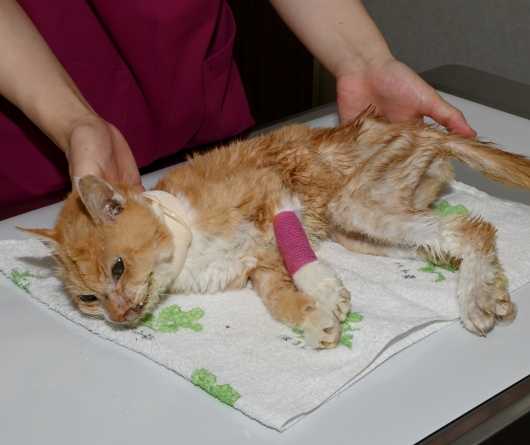病院でキャリーから出した直後のチャコは、後ろ脚に力が入らない為、このように横たわった状態