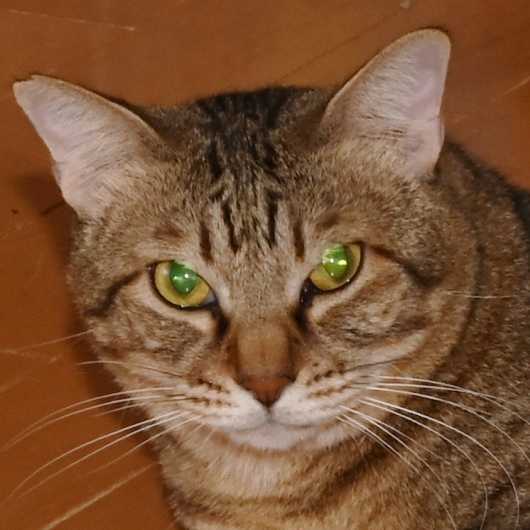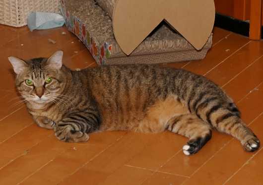 今や、家猫として、一日中、喰っちゃ寝の優雅な生活を送って居ますが、額の縞模様には、大昔のヤマネコ時代の血が、しっかり流れているようです。