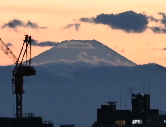 本日は空気が澄んでおり、帰宅したとき、夕焼け富士山が見られました。