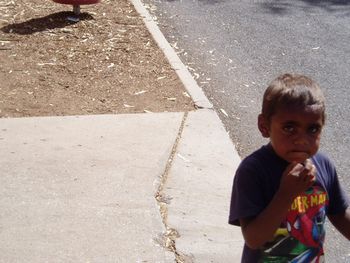 今朝、メランカバックパッカーズという宿に移動した。昨日1泊だけした宿は、町の中心部から遠いのでかなり不便だった。このアリススプリングスという町には、かなりの割合でアボリジニが住んでいる。極端にいうと、町を歩いているのは観光客か彼らといった風である。アボリジニは、オーストラリアの先住民族のことで、言葉はかなり悪いが、ゴリラのような顔をしていて、真っ黒だ。なんでも彼らは、天然記念物扱いされているらしく、政府の助成金で生活しているらしい。当然、彼らが働いている姿を見たことはない。アリスにいる彼らは、昼間から何をする訳でもなく、日陰でタムロしていたり、のろのろと町を何人かで歩いていたり、時にはモール沿いの芝生に座って土産を売っていたりしている。パース-アデレードや、アデレード-アリス間の列車内にも、アボリジニが何組か乗っていた。彼らは、家族連れで子供が多く、うるさかったりしたのだが、結構お金を持っているのか、列車内の売店で食料を買って、飲み食いしていた。 アリスの町を彷徨うアボリジニ少年そういえば、今朝メランカにチェックインしたと同時に、すぐ近くで交通事故が起こった。タクシーと普通車が衝突したらしい。幸い怪我人はいない様子であったが、やはり、今のところ私を含む周辺では、あまり良くない事ばかり起きてしまうのであろうか。。。 宿の外壁が破壊された。。。1月3日・後編へ続く