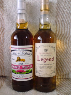 Macallan蒸留所のオフィシャルボトルではない。ボトラーズはドラミン社である。初回発売は2003年。このボトルのコンセプトは「現在のような量産され始める以前のマッカランを復活させよう」というものらしい。で、製法も伝統を頑なに守り、ノンチルでボトリング。熟成には当然シェリー樽を使用。t当然カスクストレングス。以前このLegendをBarで飲んで、「おっこれはいい!」と感激したのを覚えていて、たまたま勤務先の近所の酒屋にあったので購入したというわけである。出たらすぐに売り切れたりするボトルなので私の場合ラッキーだったといえよう。