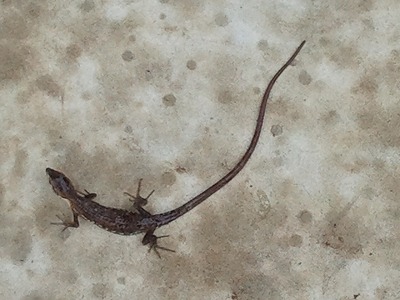 18日にご紹介した尻尾の長い蜥蜴くん本日テラスでご遺体を発見しました。(涙)あの写真が遺影となります。