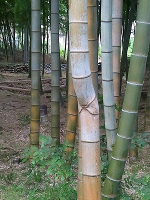 竹を割ったような性格といいますが、曲がった竹は、どんな性格なんでしょう。運河沿いのギャラリーにある竹林です。先日はここで布に描いた書道展がありました。