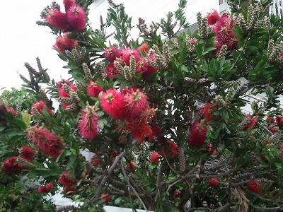『ブラシの木』去年ガーデンセンターのお兄さんに勧められたのですが、遠慮させてもらいました。「ボク、好きなんだけどなぁ」って、お兄さんご自宅にどうぞ。 『?』高台に咲いていた花。かなり大きいみたいです。葉は棕櫚みたいな形ですが、なんだかわかりません。ご存知の方教えてください。