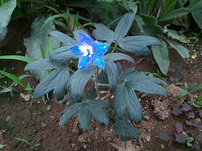 週末の天気予報は雨です。曇り空の下で花たちが健気です。ひ弱な苗で、なかなか花を付けず、半分あきらめていたのですが、今日ひとつ、花を咲かせました。多分、アンチューサドロップモア。電柱を囲ったコンクリートの箱の中の土に植えました。ブルーの花のはずでしたが…タイム マジックカーペット頑張ってます感があふれている、開花直前のピンクのカーペットローズ