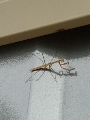 身長3cmぐらいの子どもカマキリです。あの鎌もまだ柔らかそう。繊細な姿。どちらかというと嫌われ者のカマキリですが、子ども時代はやっぱりかわいい。