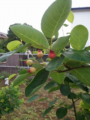 ベリー類が色づいてきました。さてさて鳥とのバトルが始まります。「完熟までもう1日」の判断が、どのくらい報われるでしょうか。とくにジューンベリーは少ししか生らないので、去年も2、3粒しかゲットできませんでした。ブルーベリーはとくに狙われやすいのですが、4本あるので結構な量を収穫できます。今年はブラックベリーが驚異の成長を見せました。まだまだ青いのですが、たまに鳥がつついています。「いま食べる君は味音痴だよ」