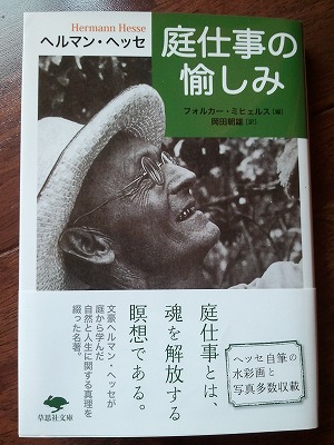 6月17日の「お気に入りの場所」でメモしてきた本をアマゾンで手に入れました。1冊は『庭仕事の愉しみ』ヘルマン・ヘッセです。ヘッセは中学生の頃、青春の通り道といった感じで夢中になり、『車輪の下』『ガラス玉遊戯』『デーミアン』や詩集を読み継ぎました。 『庭仕事の愉しみ』では、ヘッセの日常を見、肉声を聞くような楽しみを味わえます。日々の庭仕事、少年時代の思い出、花木や自然を謳った詩篇。詩的で、愛に満ちた、細やかな観察眼により、花木や石、水道の蛇口のようなものまでが、豊かな表情を見せ、語りかけ、物語を編んでいきます。ヘッセの描いた水彩画(カラー)や写真も、読む者のイメージを膨らませてくれます。一節をご紹介します。「木」より…その梢には世界がざわめき、その根は無限の中に安らっている。しかし木は無限の中に紛れ込んでしまうのではなく、その命の全力をもってただひとつのことだけを成就しようとしている。それは独自の法則、彼らの中に宿っている法則を実現すること、彼ら本来の姿を完成すること、自分みずからを表現することだ。「日記帳の頁より」より…この木が体験し 味わい 耐えたもの年月の流れ 動物の世代の交代負傷 治癒 風と太陽の友情それらは毎日その木から流れ出るだろうざわめく木の葉の歌となって穏やかに揺れる梢のやさしい身振りとなって… ハードカバーは2000円ぐらいしたのですが、うれしいことに、この6月文庫化されました。草思社文庫 1000円