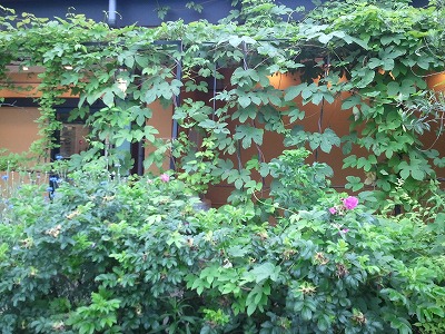 石釜パン屋さんは流行りのようで、あちこちにあります。近くの「サフラン」は他店と同様コーヒー無料サービスがある上に、イートインコーナーもゆったりとスペースがあります。テラスで食べていると、奈良の鹿のようにスズメが寄ってきます。楽しみなのがこの店のファサード。今はパーゴラいっぱいに枝を広げた葡萄の葉の緑がきれい。植え込みの花の選択も気に入っています。バラのような華やか花ではなく、野草っぽい、やさしい花ばかりです。