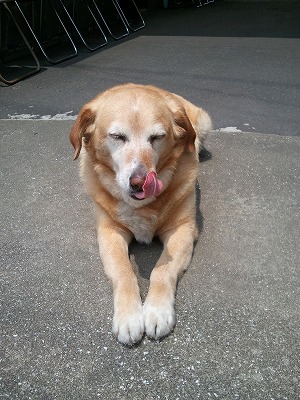 このところ、降りそうで降らないどんよりと暗い空が続きます。今日も、そんな1日のようです。この時期の5時半にしては暗い。人が通ると、かまって欲しくて寄ってくるわんこ。