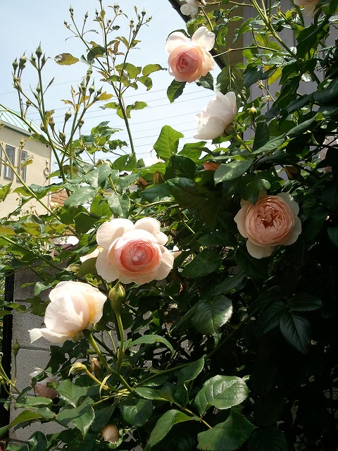 写真は物置隠しのウチの薔薇です。