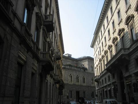 昨日の続き、メルカンティ広場。…ほら、すぐソコがドゥオモ広場なんです。この広場を通ってダンテ通りに抜けてカステッロに行ったりできるから、意外と人通りもあるのですが、ショッピングの町、ミラノの哀しさで(?)、こういう場所でじっくり建物を眺めるひとがいないのかも。 …なんて、書いている私も、実際にはどの建物がどんな由来のものか、詳しいことは知りません(笑)・・・・ま、雰囲気、雰囲気~♪時間のあるときにゆっくり、ガイドブック片手に探検しよう、なんて思いつつ今に至っています。でも、ショッピングの合間に、ふと喧騒から逃れたくなったらこんな裏道(?)があることを思い出すのもいいかもしれません。 ほら、こんな風に。。。イタリアの女性は、結婚して子供ができてマンマになると、体型も性格も「ドッシリ」しちゃうヒトが多かったのに、最近はいくつになってもキレイでお洒落で、そしてカッコイイ女性がたくさん☆若いヒトはどんな格好をしていても若さでカッコよくみえるものだけど、ある程度オトナになったら、自分なりのお洒落のスタイルをもって、そして素材やモノの良し悪しがわかる「目」ももっていたいものですよね。そういう点は、まだまだヨーロッパのヒトにはかなわないのかなぁ。ブランド品を手にしたり、身に着けたりするのは、ブランドネームのチカラで自分を格上げするのではなくて、そのモノの価値を知って、自分のスタイルに取り入れることができて初めて、カッコイイ着こなしやコーディネートになるのだと思うのですヨ。そういう上質な素材や価値観って、雑誌やテレビを通してはなかなか伝わらないもの。自分の目でみて確かめる、そういうことが若いうちから自然と身についているんですよね。 昔のお屋敷の、ロッジア。一段高くなった回廊こそ、周囲の喧騒から切り取ったような静けさに包まれています。中世のロッジアを通して見えるのは、現代のショッピングエリア。・・・で、あのお店のアタリ、ロッジアのムコウ側からこちらを見ると、昨日のレストラン、Ristorante al Mercante が見えるんです。なんだか、タイムトンネルみたいじゃありません??