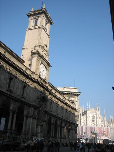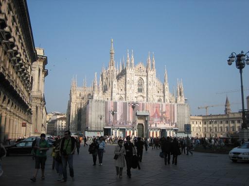 ご存知、ミラノのドゥオモ。ゴシック建築の最高傑作といわれ、起工から完成まで実に500年もの歳月を費やして出来た、ミラノのシンボルです。数年前から、このドゥオモの「汚れ落とし」がおこなわれてきました。今年の春になって、ようやく、正面の下半分を残すのみとなりましたが、最近行った方、どうでしょう、工事終わりそうですか~? 工事中は足場を隠すため、また収入にもなるので、いろんな広告が貼られたりしますネ。ドゥオモ側面には、パネットーネやパンドーロでおなじみのBauri社の、美味しそうな広告♪ でも、さすがに正面は「ミラノのシンボル」としての面目もありますので(?)、こういう雰囲気のある絵で飾られていました。・・・この絵も、時期によって変わったりしてますよね。いよいよ正面も上半分がお目見えして、その縦のラインにつながるように中世の衣装をつけた人々の絵。なんとなく、ドゥオモの内部のつくりを思い出させる絵ですよね。 ドゥオモの内部はいつ行ってもひんやりと涼しくて、その天井の高さと荘厳な雰囲気に圧倒されます。パスクァやナターレのミサには、この広いドゥオモがびっしりと、参列者で埋め尽くされるのです。。。想像するだけで鳥肌がたちます。今年中には、晴れて前面お色直しも完成☆・・・するでしょうか? お色直しがすんだ、上半分。晴れた日には輝いて見えます☆1386年に着工されて、最後の尖塔が完成したのが1887年。完成時にはすでに、最初のころの部分は色が変わっていたんでしょうね~(笑)それでも、こうしてキレイになったドゥオモをみると、ミラネーゼたちが誇りを持って見上げ、そして観光客からは感嘆のまなざしをあびてきたドゥオモの、本来の姿をみることができてちょっとうれしくなるのでした。。。